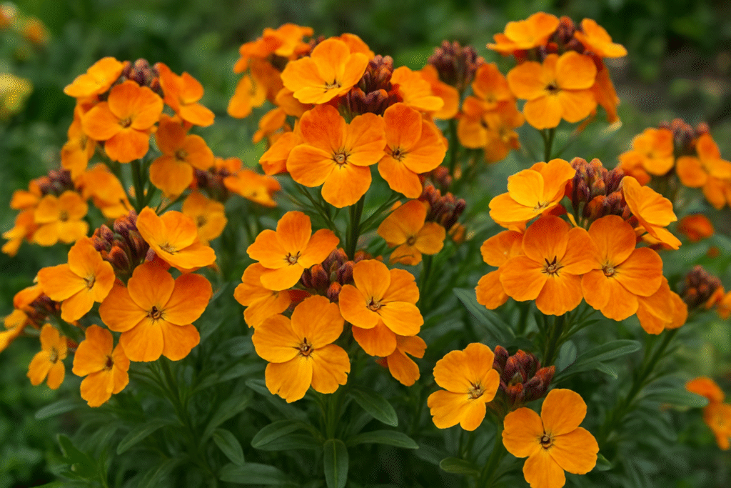 - Sedum (stonecrop), rudbeckia, asters, perennial wallflowers, echinacea—keep gardens rich until the first frosts.