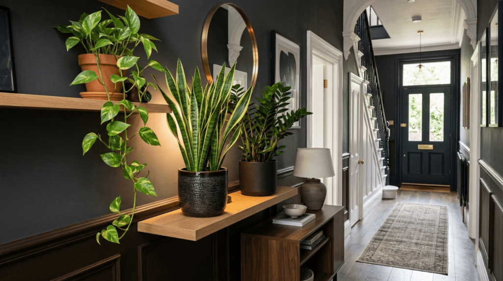 - Snake plant, pothos, and ZZ plant pretty much thrive anywhere. These guys handle missed waterings and non-ideal lighting, making them super forgiving when life gets busy.